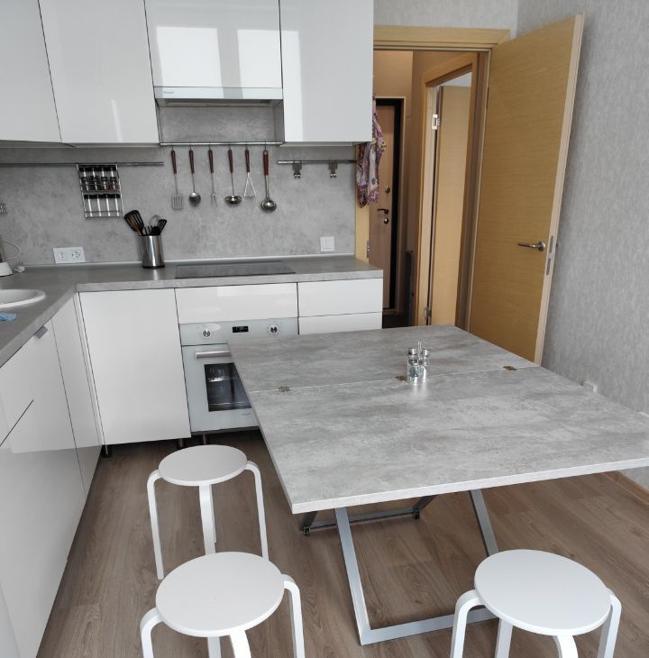 Внимание !! Сдается отличная современная квартира с почти НОВОЙ мебелью!! Светлая, ухоженная. В комнате красивая белая мебель - 2-х спальная подьемная кровать, большой встроенный шкаф, высокий потолок более 3.5-м с разноцветной подстветкой, кондиционер, телевизор. На просторной лоджии приятно встречать рассвет или выпить чашечку кофе в свободное время. В столовой раздвижной большой стол , регулируется по высоте , ТВ, раздвижной диван - как еще одно дополнительное спальное место. Оснащена всеми современными электроприборами для приготовления любых кулинарных изысков: посудомоечная машина, жлектродуховка, варочная индукционная панель, кофемашина, пароварка, холодильник нофрост, шредер - измельчитель и пр В коридоре шкаф для верхней одежды. На этаже тихо, спокойно. Невысокая квартплата - летом 3-3.5 тыс. Зимой 5-6 тыс. . Все магазины в шаговой доступности. Рядом выезд на КАД. Во дворе 2 школы, садики, остановки общественного транспорта. Квартира очень хорошо подойдет для тех, кто ценит и любит современный комфорт. Снять можно с ребенком старшего возраста.. Звоните, Покажем в удобное для вас время. Небольшой торг возможен.