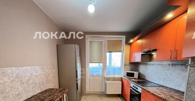Кухня оборудована теплым полом и всей необходимой бытовой техникой: варочная поверхность, духовой шкаф, микроволновая печь, вытяжка, чайник, холодильник и посудомоечная машина. Просторный кухонный гарнитур предоставляет достаточно места для хранения, а выход на застекленный балкон создает уютное пространство для отдыха.