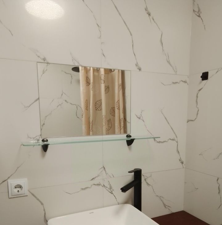 В ванной установлен электрический тёплый пол.