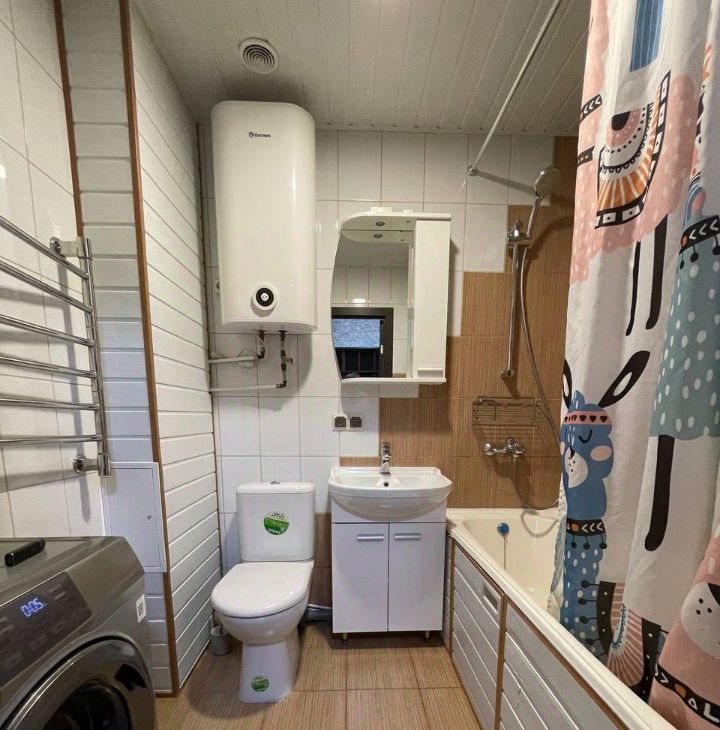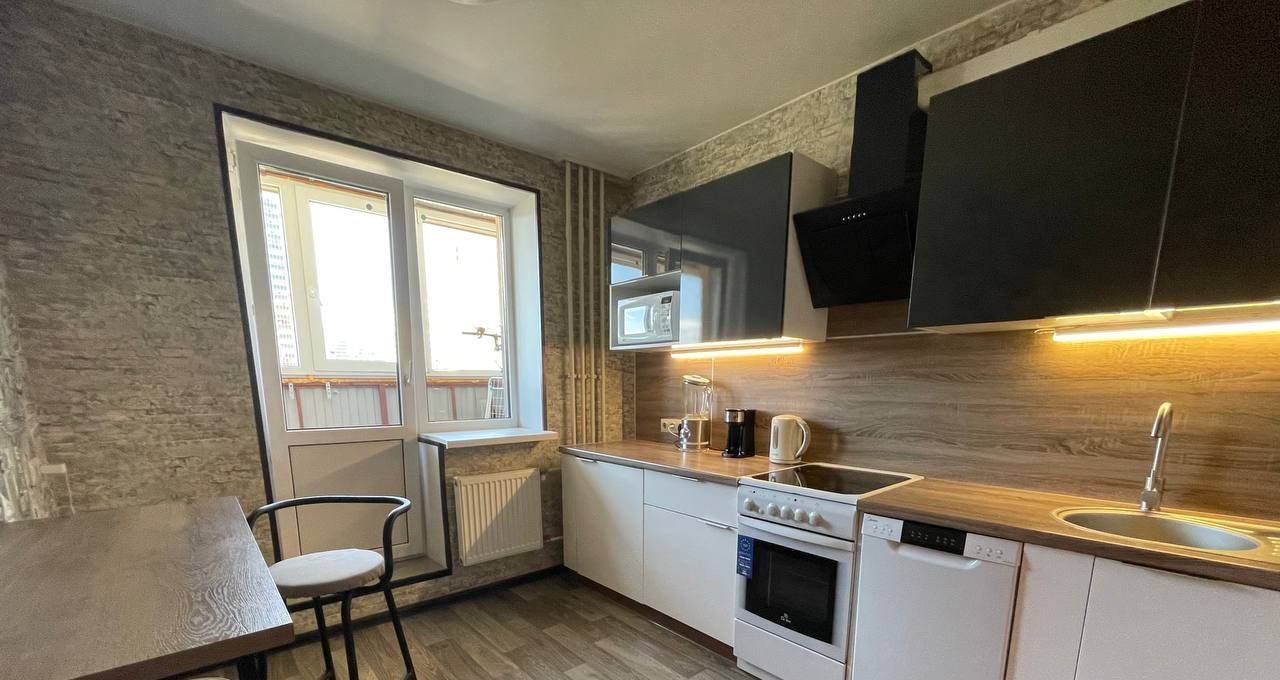 Из техники: холодильник, телевизор, посудомоечная и стиральная машины, микроволновая печь и электрический чайник. На кухне установлен обеденный стол (показан на отдельном фото) вместо лофт, в комнате компьютерного стола уже нет. Есть большой застекленный балкон. Квартира в отличном состоянии, соседи спокойные и приятные.