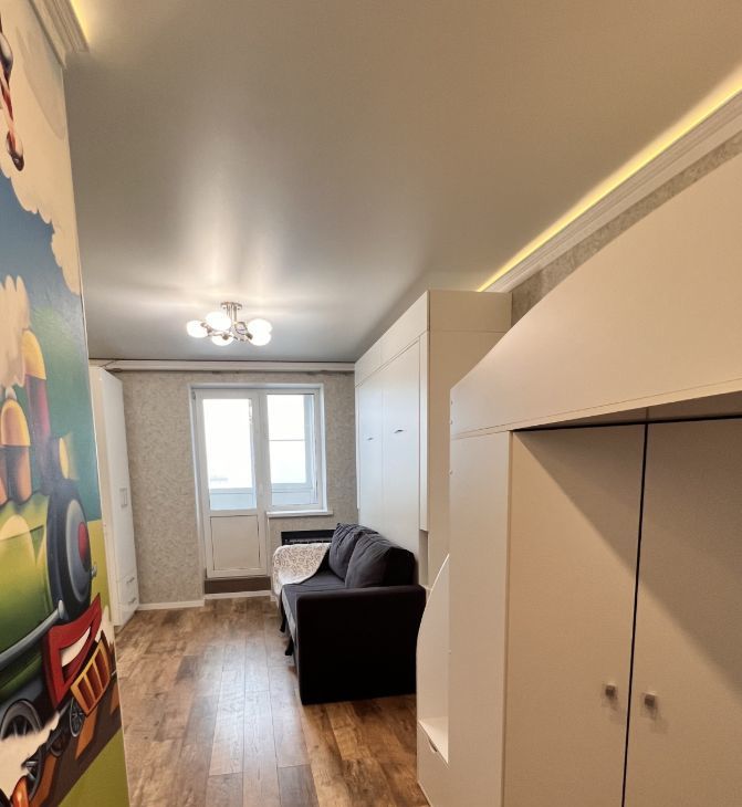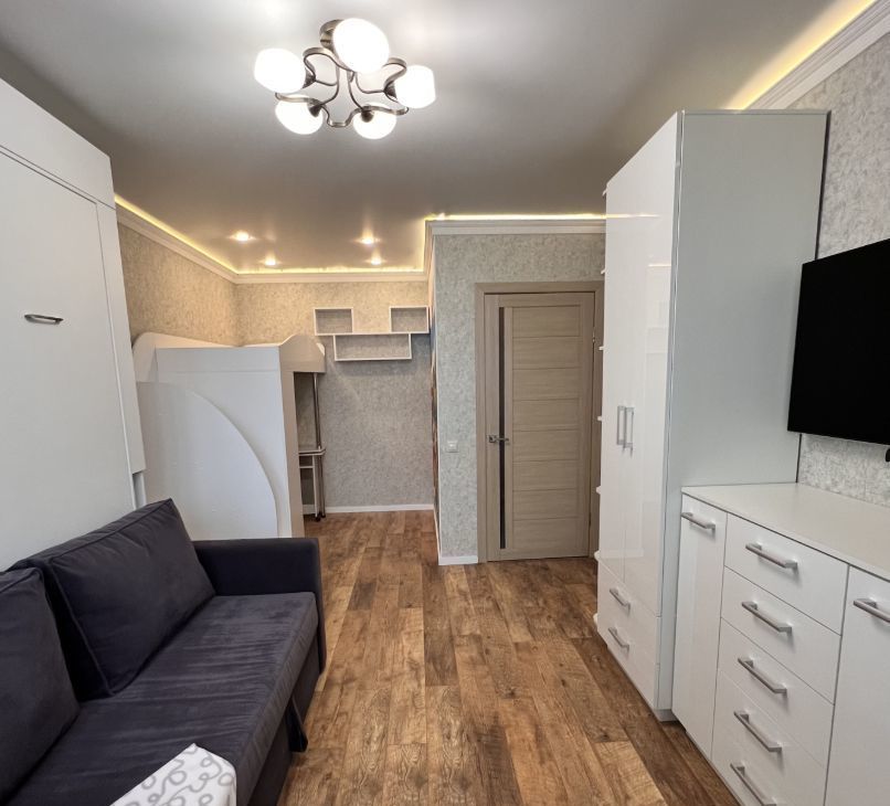 Уютная однокомнатная квартира на 23/23 этаже монолитного дома. В квартире выполнен качественный ремонт, максимально продуманный для комфортного проживания.