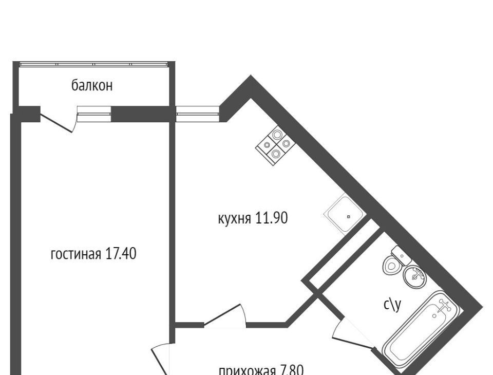 1-к кв. Санкт-Петербург пос. Шушары, просп. Новгородский, 6 (42.0 м²)