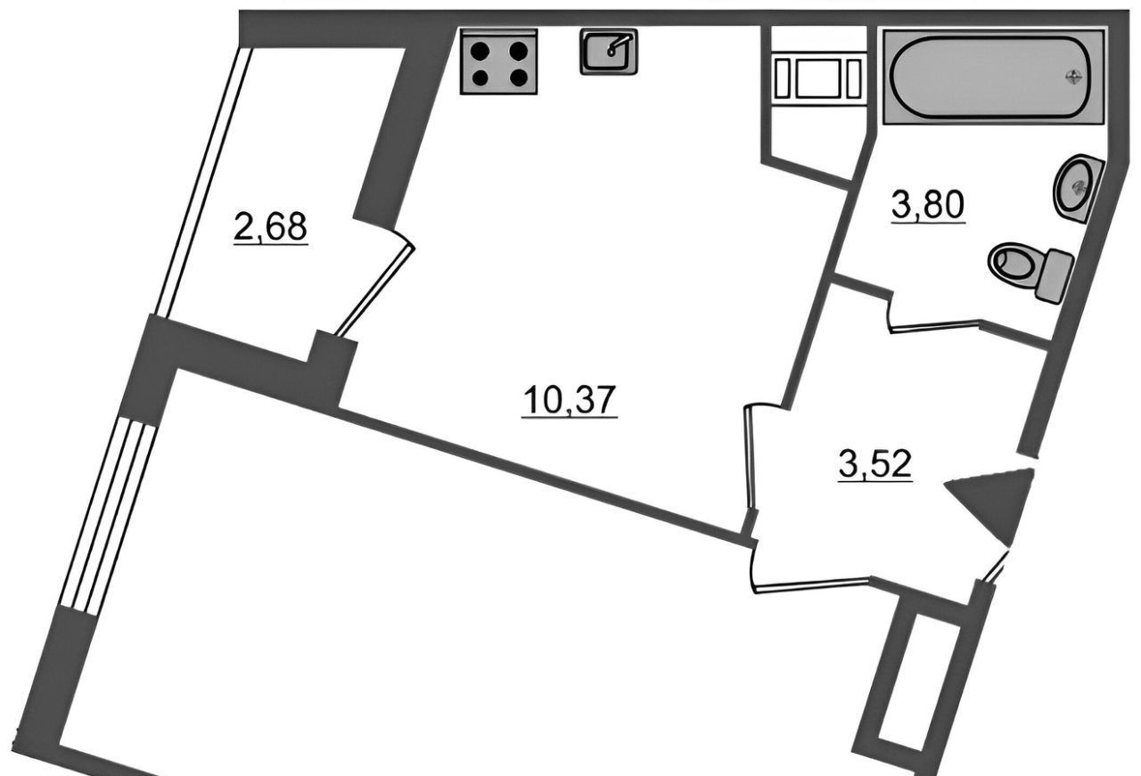 1-к кв. Санкт-Петербург пос. Шушары, просп. Старорусский, 13к1 (38.9 м²)