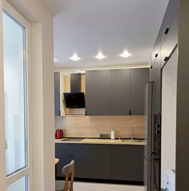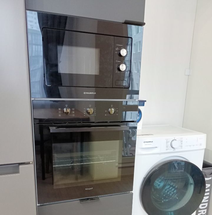 В квартире есть: двухкамерный холодильник, индукционная варочная панель, электрическая духовка, микроволновая печь, стиральная машина, посудомоечная машина, вытяжка. Бонусом - пылесос и тепло-вентилятор (холодный/горячий воздух). Сушилка, чайник, посуда и прочие мелочи тоже остаются в пользование нанимателя.
