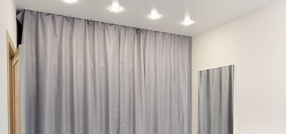 В комнате - удобная большая кровать и вместительная гардеробная, кокетливо закрывающаяся шторами.