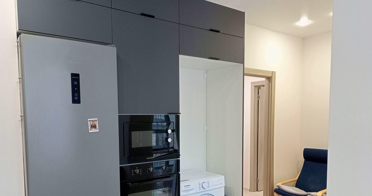 Девушка - собственник купила эту квартиру для себя и всё в ней сделала максимально удобно, практично и комфортно. Не поскупилась на ремонт, приобрела дорогую бытовую технику.
