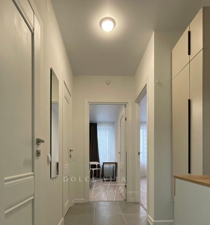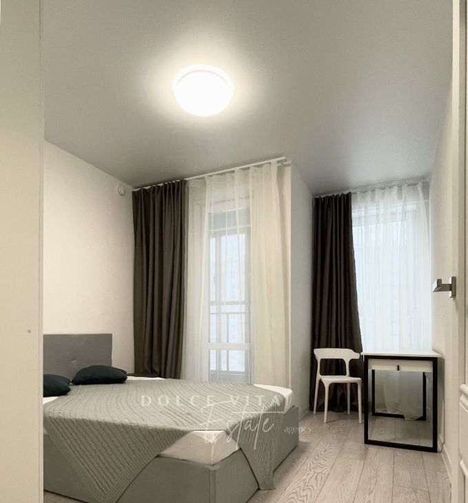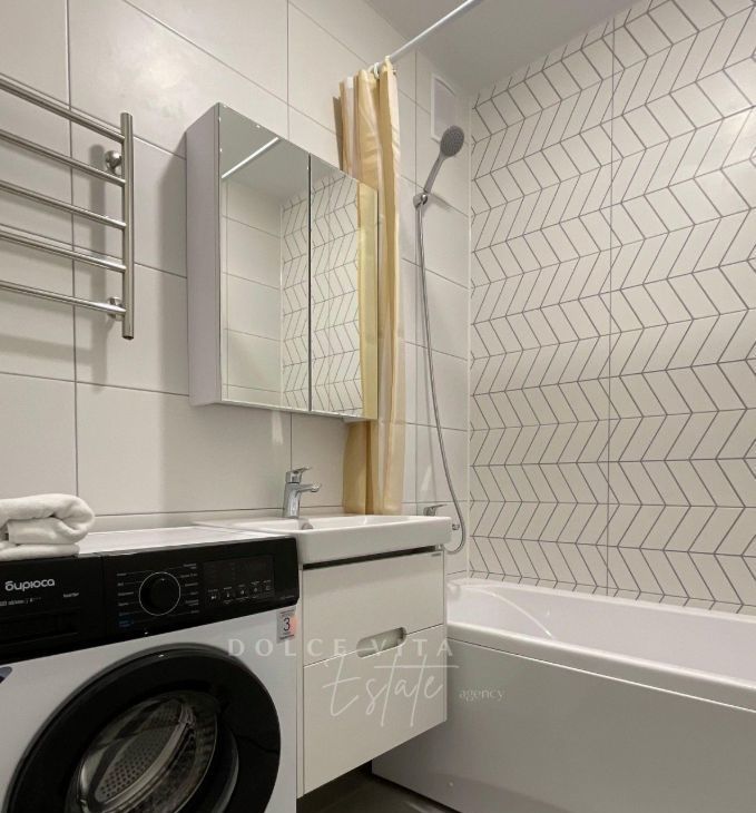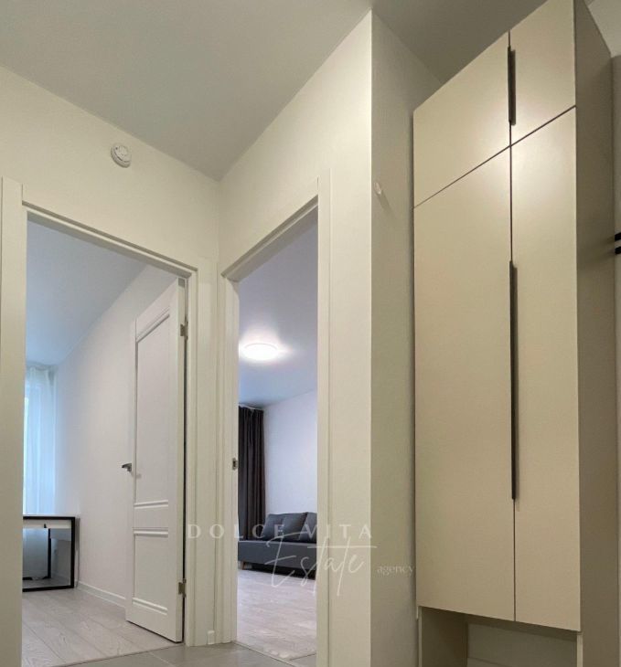 Квартира после ремонта, все новое, сдается впервые. В доме квартиры с полной чистовой отделкой, поэтому ремонтные работы у соседей уже не помешают. Предусмотрен подземный паркинг, в него можно спуститься на лифте.
