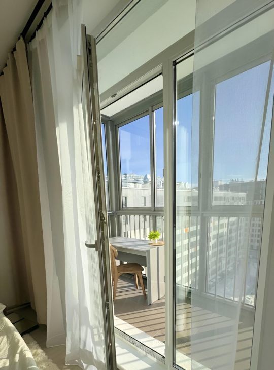 Окна расположены удачно: днём много солнца, вечером красивые закаты, открытый горизонт. Тихо, без шума дороги