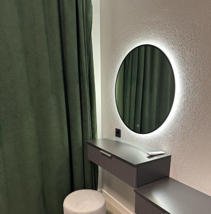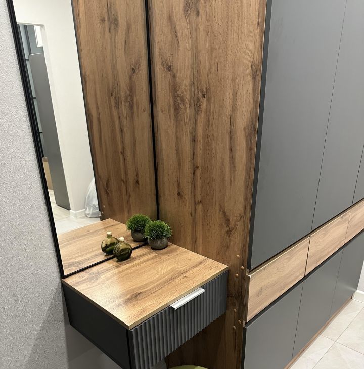 Зонирование: в квартире удалось эргономично разделить пространство на прихожую, ванную, зону кухни-столовой, спальню, туалетный столик/рабочие место.