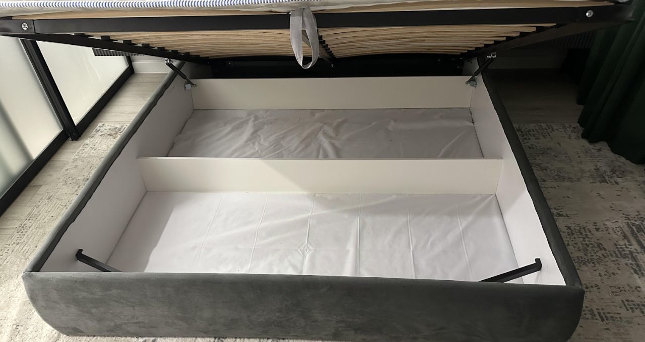 Мебель (все новое): в ванной, зоне кухни, на балконе, в спальне и прихожей. Ортопедический матрас кровати обеспечит наивысший комфорт сна. Огромный шкаф от пола до потолка. Дополнительная зона хранения под кроватью с подъемным механизмом
