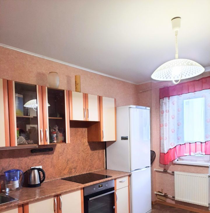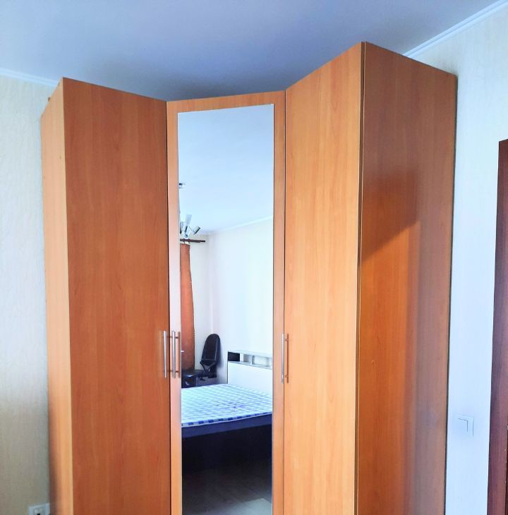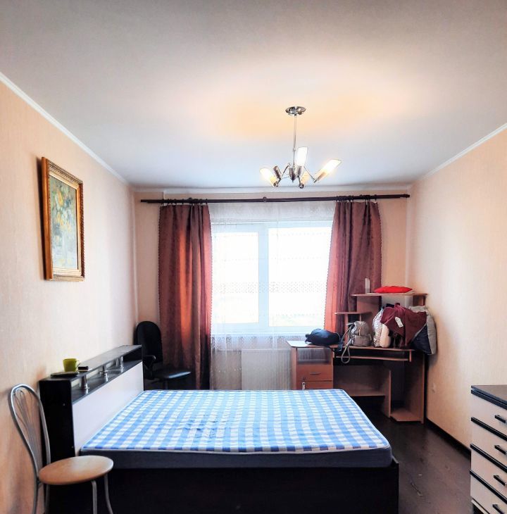 Отличное состояние, просторная комната, большая кухня, застекленный балкон, раздельный сан.узел. Всё необходимое для жизни есть: двуспальная кровать, встроенная кухонная мебель, холодильник, стиральная машина, рабочий стол, прихожая.