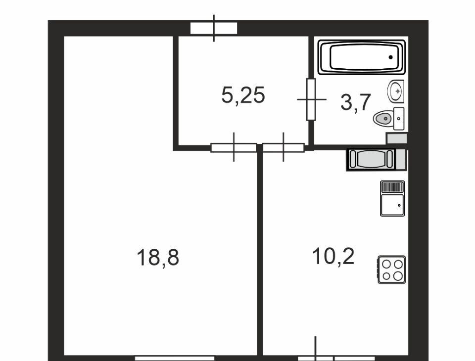 Комната 18,8 м², кухня 10,2м², вместительная гардеробная, большая застекленная лоджия 7м².