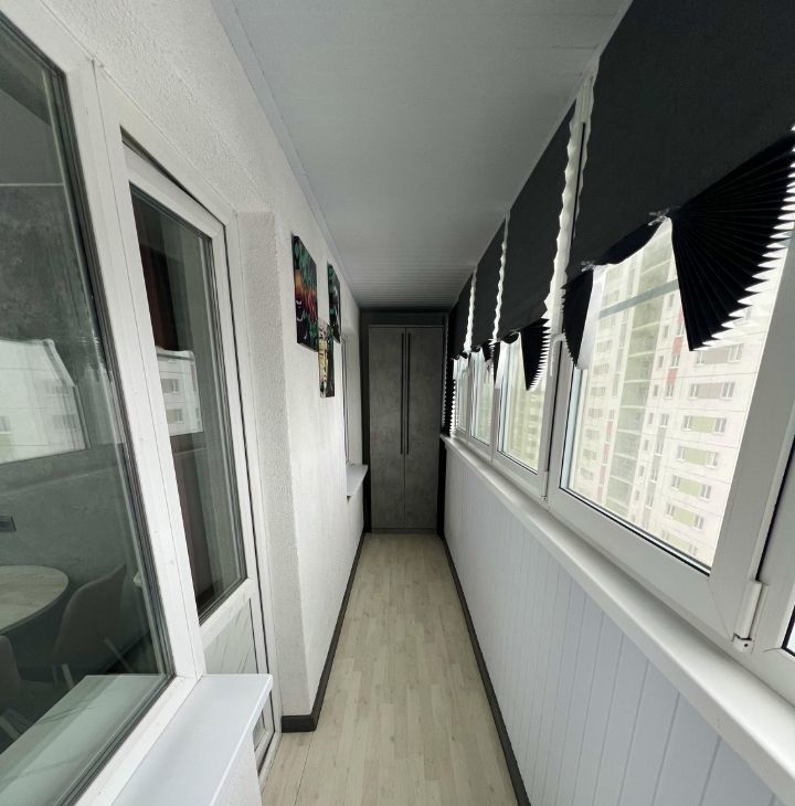 Имеется большая застекленная лоджия. Квартира очень теплая, полностью укомплектована необходимой мебелью и бытовой техникой.