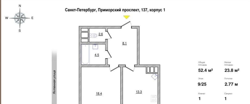 1-к кв. Санкт-Петербург Приморский просп., 137к1 (52.4 м²)