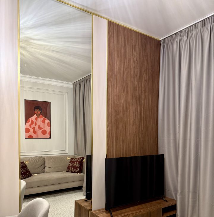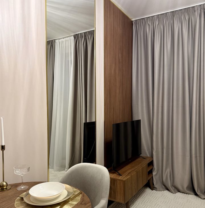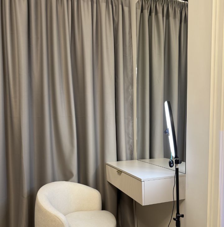 Просторная спальня с кроватью 180х200, ортопедическим матрасом, бьюти зона с туалетным столиком и собственный кинотеатр! Только представьте эти уютные вечера за просмотром любимых кинофильмов прямо у себя дома !