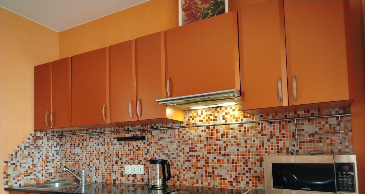 - кухня со всей необходимой техникой: посудомоечная машина, большой холодильник, варочная панель, вытяжка, духовой шкаф, микроволновая печь.