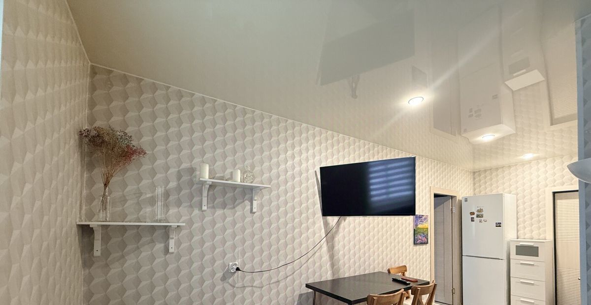 Вся техника: Стиральная машина, холодильник, посудомоечная машина, огромный смарт-телевизор.