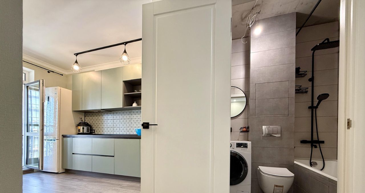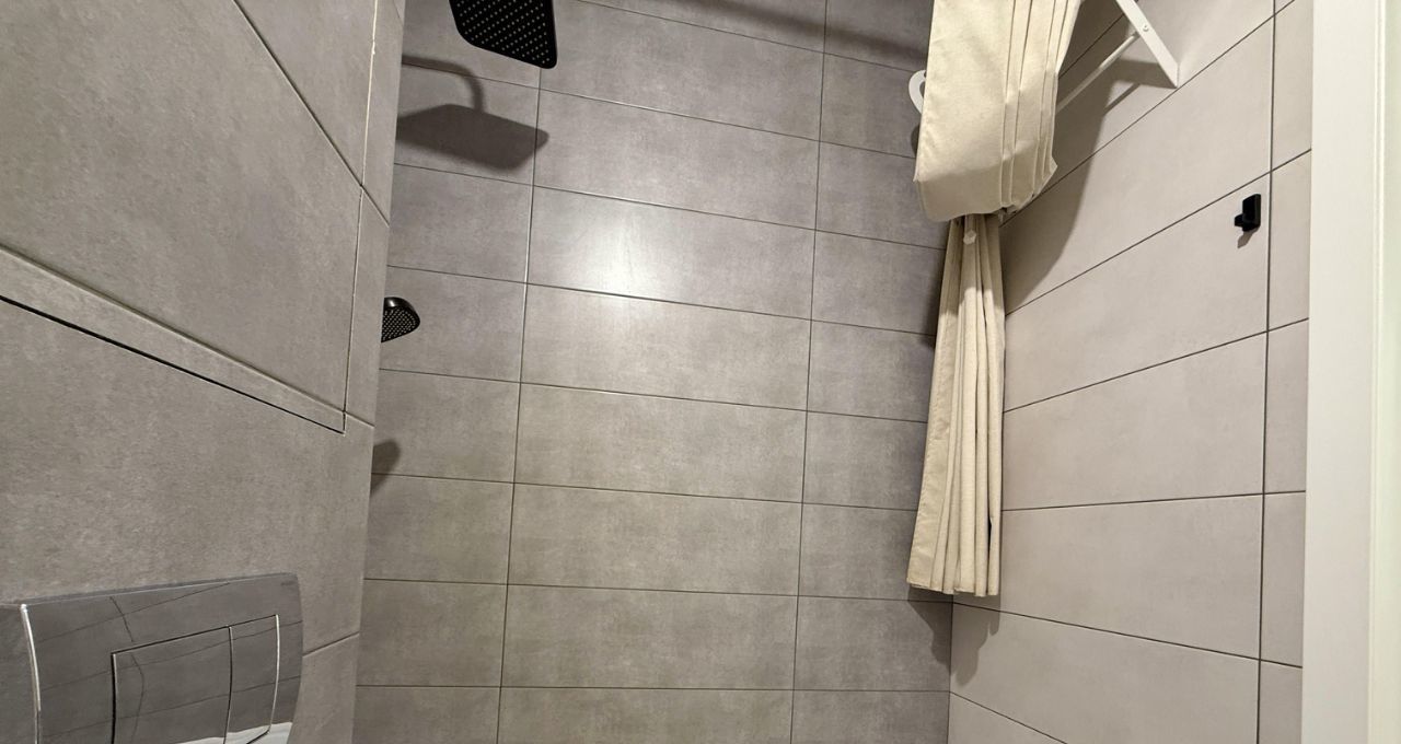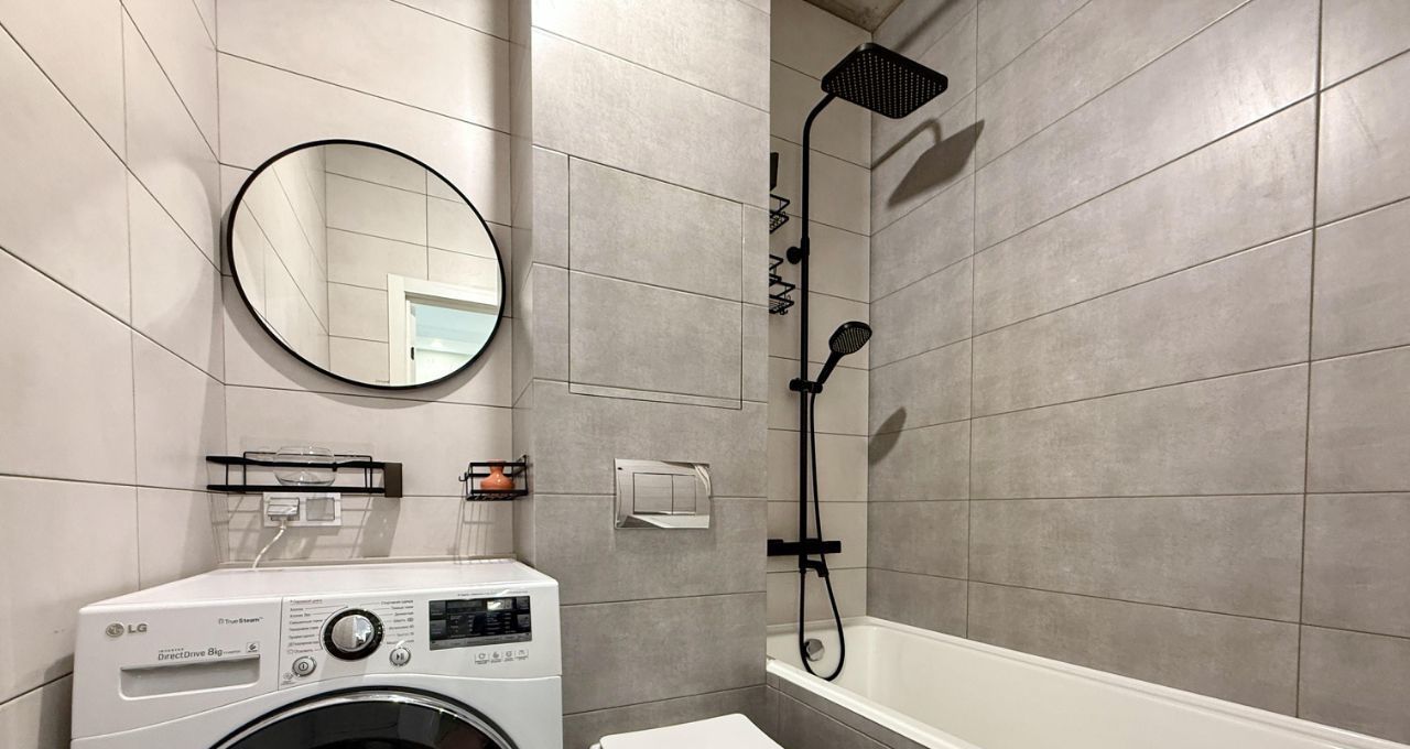 — санузел совмещенный, ВАННА, тропический душ; новая стиральная машина-автомат на 8кг; подогрев зоны сушки белья; раковины в санузле нет