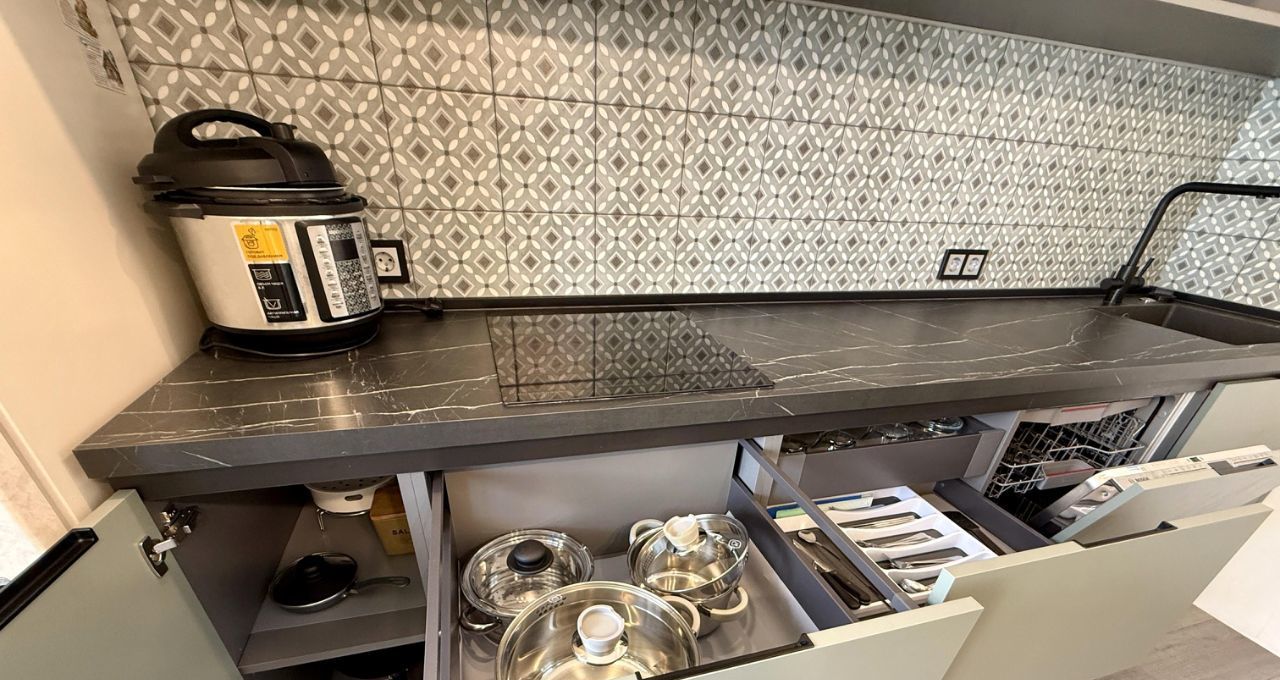 — стильный кухонный гарнитур; широкая ПОСУДОМОЕЧНАЯ МАШИНА, электрическая варочная панель, вытяжка, двухкамерный холодильник, мультиварка, электрический чайник; установлен новый ФИЛЬТР НА ВОДУ под мойку и ИЗМЕЛЬЧИТЕЛЬ ОТХОДОВ; обширная рабочая зона для готовки, ПОДСВЕТКА; необходимый комплект посуды