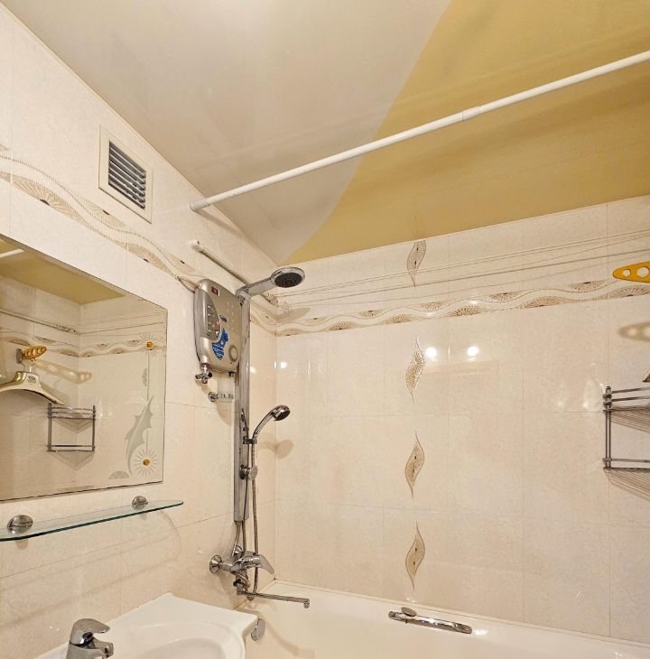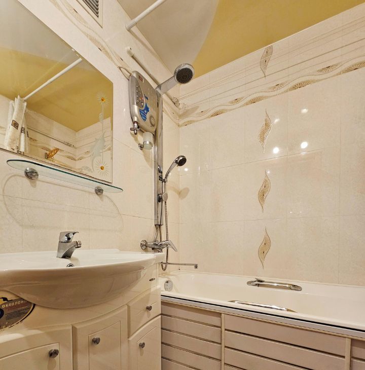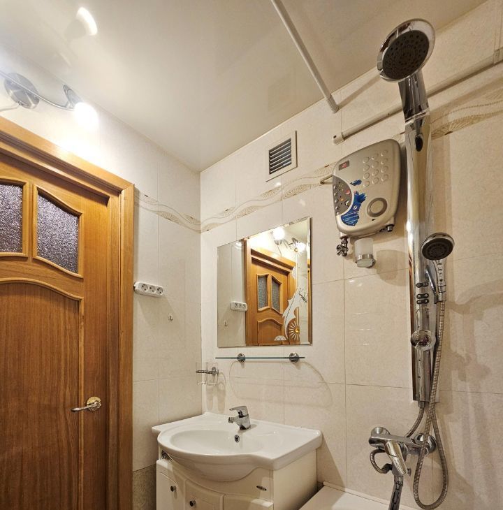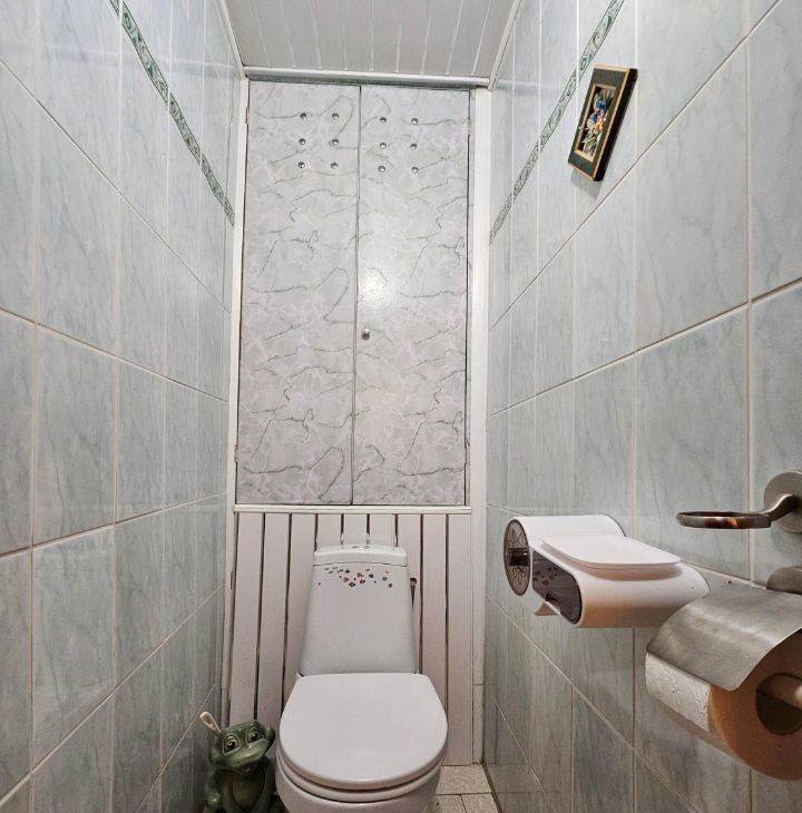 Санузел раздельный, в кафеле. На случай летнего отключения горячей воды есть водонагреватель.