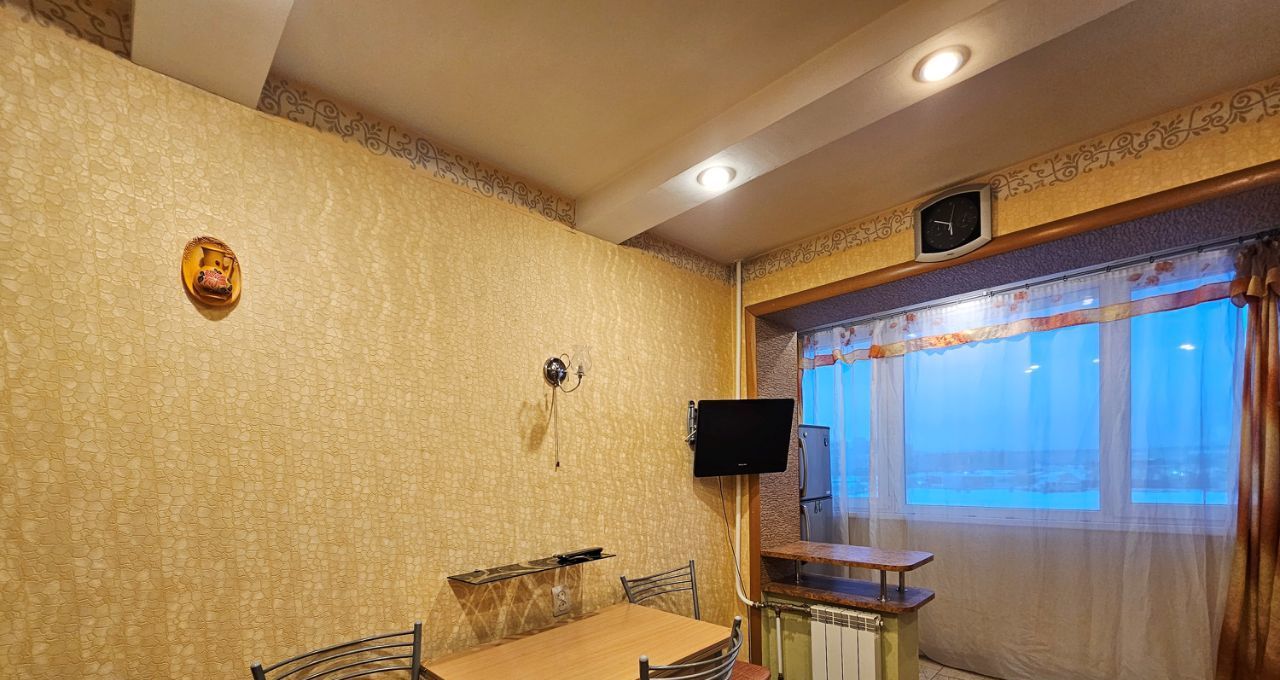 В комнате: двухспальная кровать с вместительным ящиком для белья, новый раскладной диван, большой ЖК телевизор, небольшое рабочее место. Выход из комнаты на застекленную, утепленную лоджию. На лоджии установлен вместительный шкаф купе и тумба для хранения вещей.