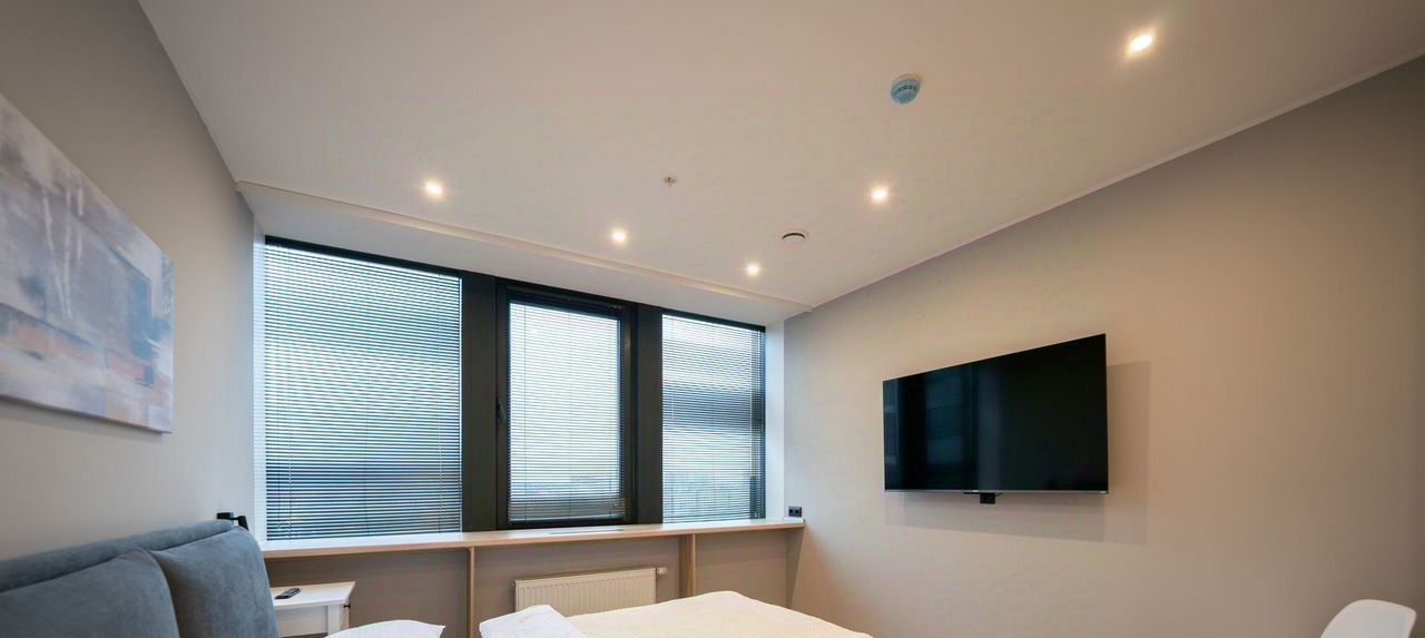 Общее оснащение номера: кухня с варочной поверхностью и вытяжкой, СВЧ- печь, чайник, набор посуды,большой холодильник, кровать (двуспальная 180*200) с высококачественными ортопедическими матрасом, полный комплект текстиля, блэкаут-шторы, телевизор со Smаrt ТV, рабочая поверхность, система хранения, собственная ванная комната с душевой, стиральная машина, фен, утюг, гладильная доска,Wi-Fi роутер, сейф, кондиционер,пылесос,зонированное освещение в квартире.