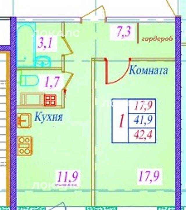 42,1 м2 + балкон 5м2