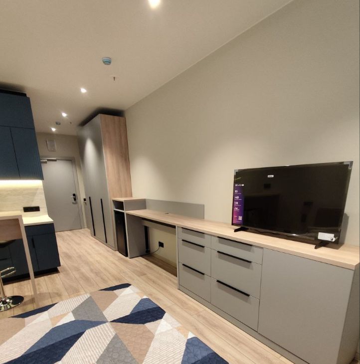 На длительный срок сдается видовая, теплая , уютная квартира-студия ЖК"Невский авенир" в 2 минутах от ст. метро Ладожская . Квартира просторная,светлая. Квартира оформлена в современном стиле- теплый минимализм с модными деталями в интерьере. Большое обустроенное место для хранения одежды. Кухонный гарнитур со встроенной варочной поверхностью, холодильник.