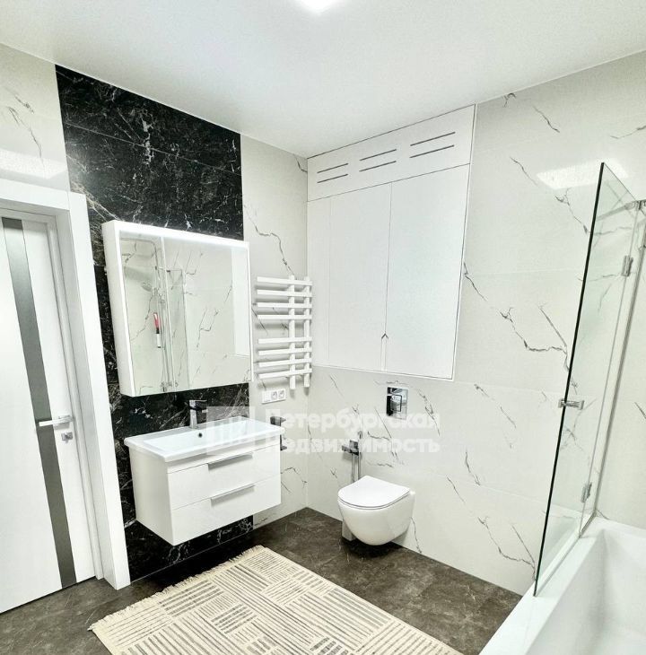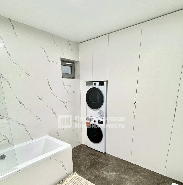 -Ванная комната оснащена качественной сантехникой и фурнитурой, сушильной и стиральной машиной, встроенной системой хранения