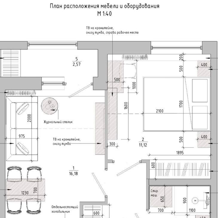 - Встроенная кухня (ПММ, духовка, варочная панель, холодильник, микроволновка),