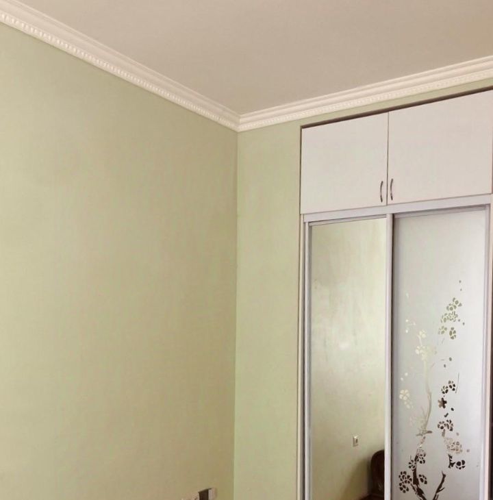 В комнате установлен вместительный шкаф-купе и мягкая мебель. Из окон открывается вид на тихий двор с открытой парковкой. Санузел совмещенный, оборудован ванной и стиральной машиной.