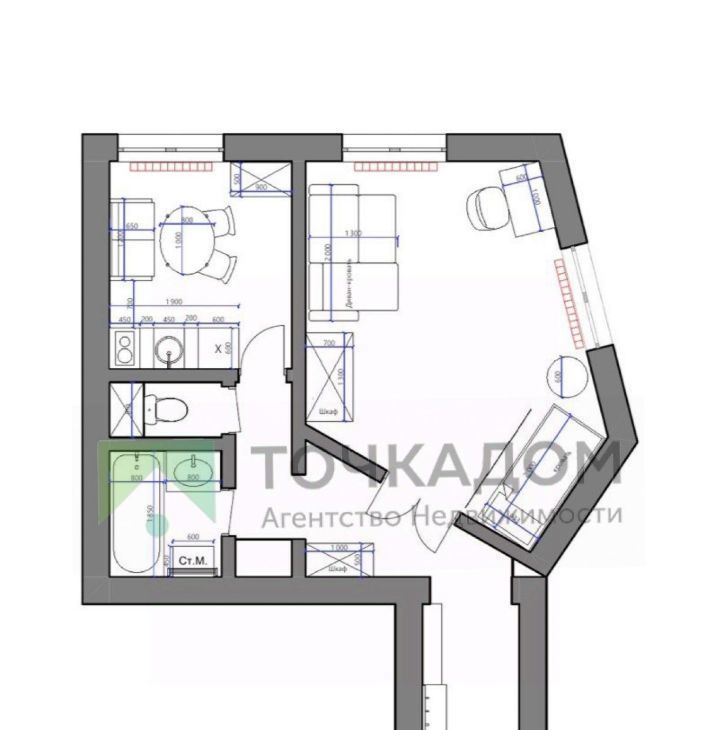 1-комнатная квартира: Санкт-Петербург, Туристская улица, 24/42 (40 м²)