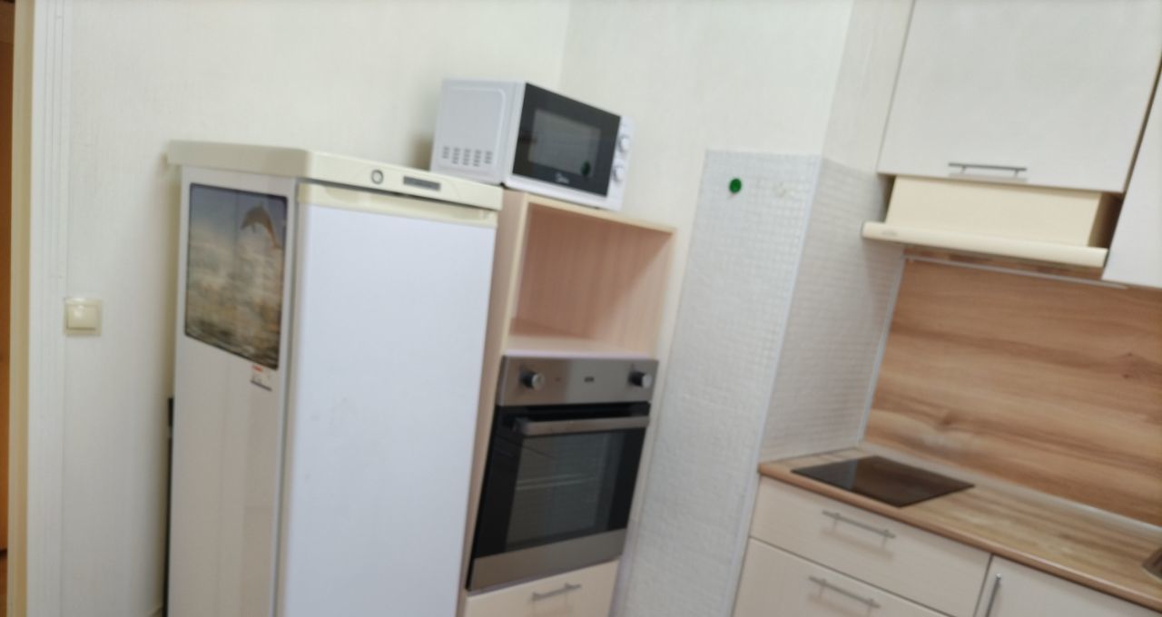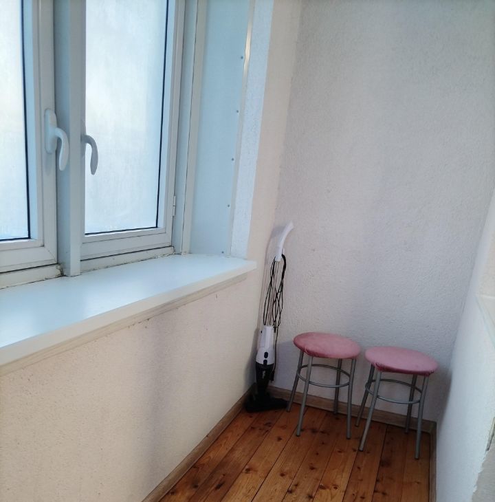 Есть все необходимое для комфортного проживания: холодильник, микроволновка, стиральная машина, чайник. Двуспальный диван, вместительный шкаф и комод, стул, табуретки. Утепленная лоджия с видом на залив, можно любоваться закатом.