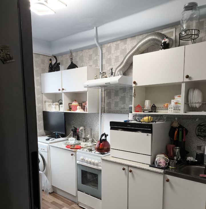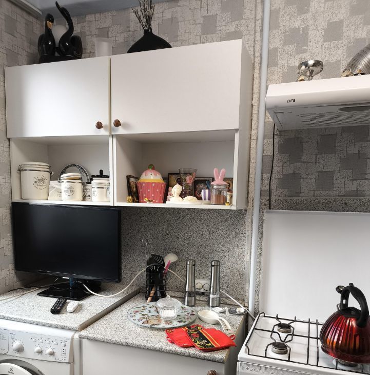 В квартире есть все необходимое:кровать с местом для хранения, двойной шкаф в комнате, пенал, 2 смарт телевизора, посудомоечная машина, микроволновка, холодильник, чайник, диван раскладной на кухне, шкаф в коридоре и антресоли.