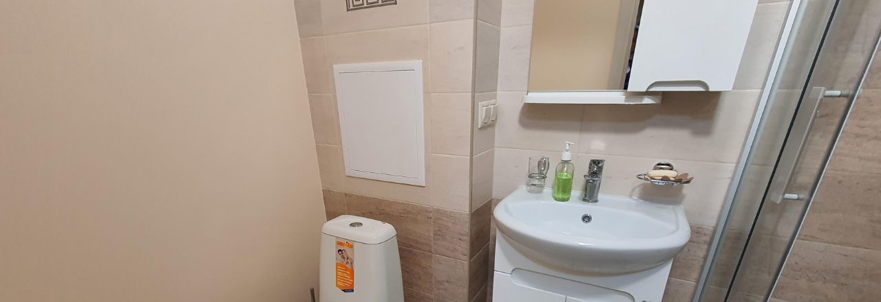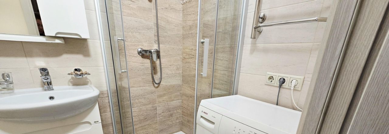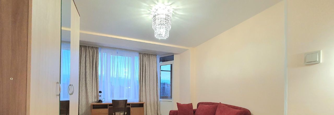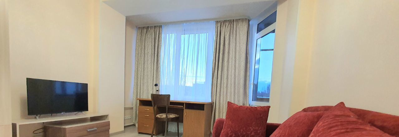 Просторная комната, спальная зона с комфортной двух-спальной кроватью, есть диван, письменный стол, телевизор, застекленный балкон. Окна квартиры выходят в большой тихий двор. Kуxня полнocтью оборудовaнa, двухкамерный хoлoдильник, пocудомоечнaя машина, микроволновка. Санузел с душевой кабиной, стиральная машина.