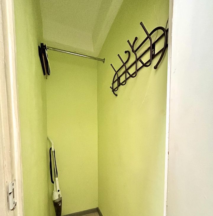 При входе — просторная гардеробная со штангой. Удобно сложить всё сразу с порога.