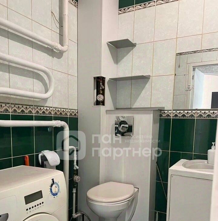 В ванной комнате стиральная машинка, сантехника вся в отличном состоянии.