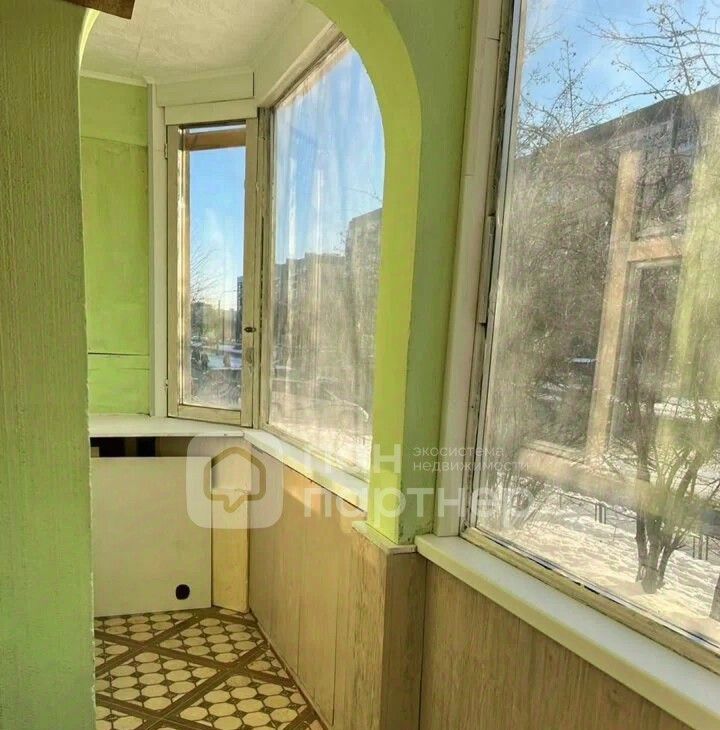 Большая лоджия застеклена и утеплена, что позволяет использовать как дополнительное место для хранения вещей или для отдыха.