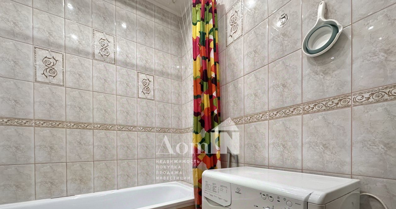 - Раздельный санузел с ванной, зеркалом и стиральной машиной.