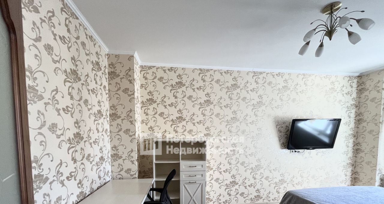 В спальне комфортный удобный матрац, кровать с мягким изголовьем и подъемным механизмом, телевизор и многофункциональная тумба с компьютерным столом для работы на компьютере.