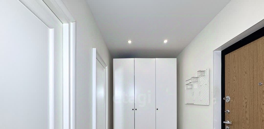 Общая площадь грамотно распределена: изолированная комната 17 кв. м. дополнена значительным количеством встроенных шкафов для хранения, что решает вопрос с организацией пространства.