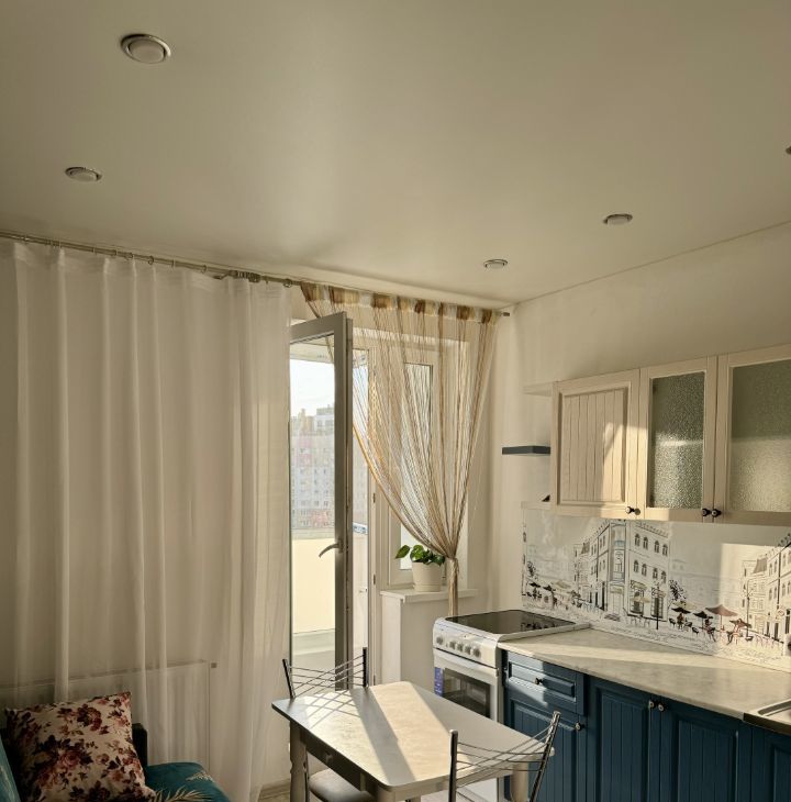 Сдаётся однокомнатная квартира на 16 этаже современного 21-этажного дома, построенного в 2019 году. Общая площадь составляет 39 кв. м, жилая площадь — 17 кв. м, а кухня — 9 кв. м. Высокие потолки 2.6 метра добавляют ощущение простора. Удобное расположение позволяет быстро добраться на автомобиле до метро "Комендантский проспект" всего за 7 минут.