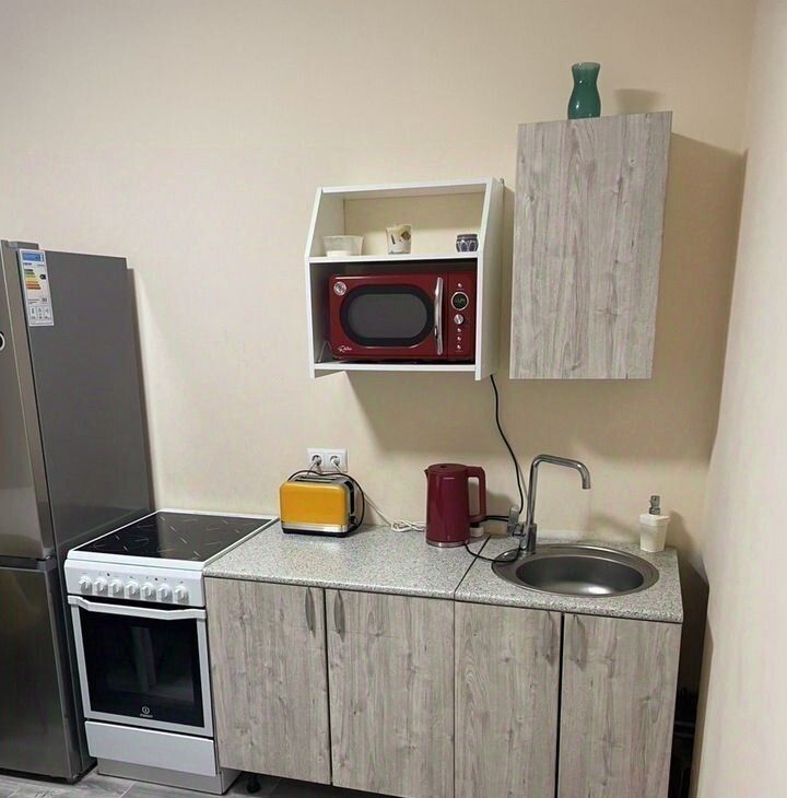 В квартире имеется необходимая бытовая техника: холодильник, стиральная машина, электрическая плита, микроволновая печь и телевизор. Жилье оборудовано мебелью в комнатах и на кухне, готово для комфортного проживания.