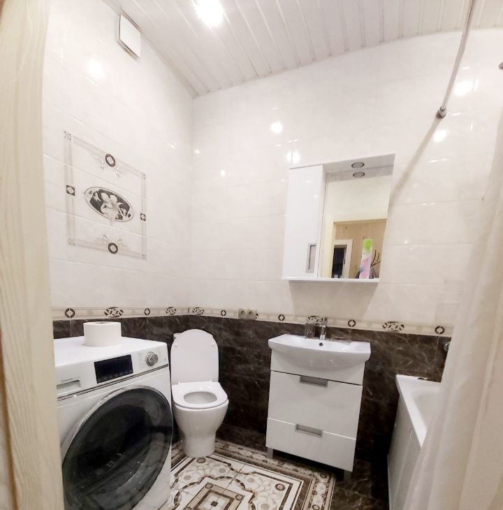 Простойорный санузел 4 м²: Чистота, функциональность и безупречная отделка.