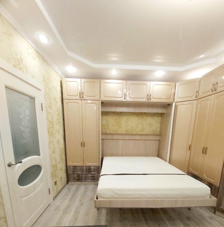 Простор и комфорт: Огромная кухня и совмещенная спальня-гостиная.
