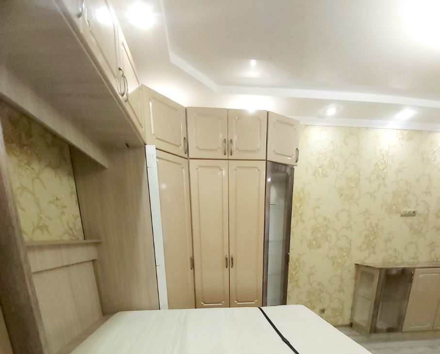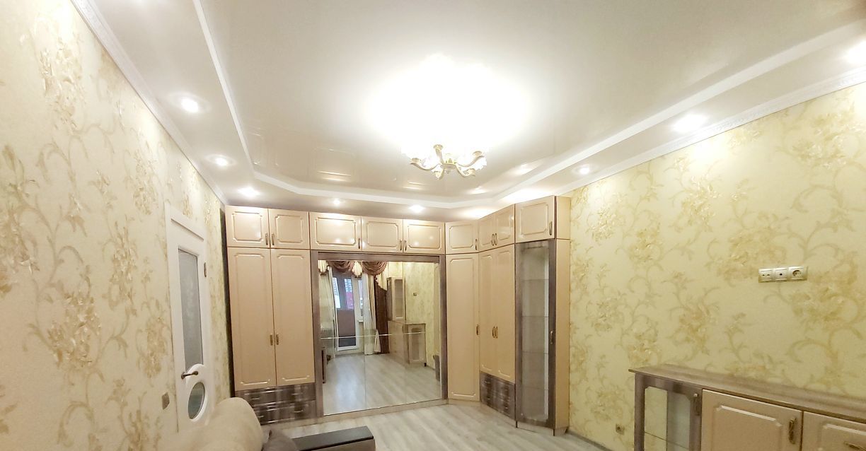 Просторная спальня-гостиная: Вместительная зона для отдыха с раздвижным шкафом с комфортной кроватью и выходом на лоджию.