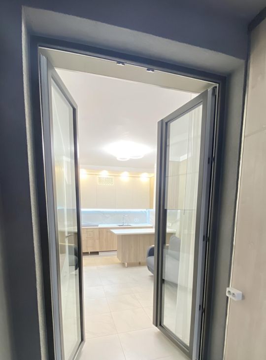 Общая площадь 38 кв.м., комната 14 кв.м., кухня-гостиная 16 кв.м., просторная лоджия с панорамным остеклением. Окна выходят в тихий двор на южную сторону.