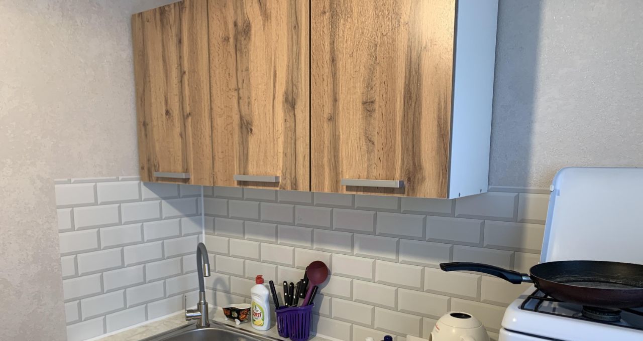 Квартира после свежего ремонта, есть все для проживания. В комнате установлены шкафы и диван, а также есть вместительный гардероб.
