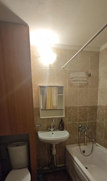 В квартире сделан косметический ремонт, поэтому она выглядит свежо и аккуратно. В комнате и на кухне есть вся необходимая мебель, а также техника: холодильник, телевизор и стиральная машина, посуда, утюг , сушильная доска. Санузел совмещённый и оборудован ванной. Уютная лоджия станет отличным местом для отдыха.