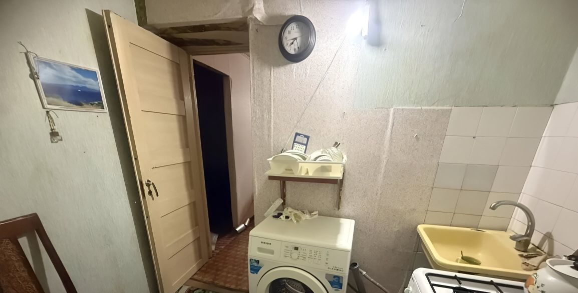 В квартире есть холодильник, стиральная машина, кухонная мебель.